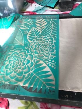 Using the Modern Floral transfer, (or any of our 18×18 background transfers) place the bottom line down on your surface to the point you want to create that straight line.